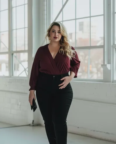 What I love most about this outfit is how it mixes softness and structure in such a balanced way. The burgundy blouse adds a pop of color and femininity, but the black jeans ground the look, giving it a sophisticated edge. It s comfortable yet stylish, making you feel confident without sacrificing comfort. And those ankle boots? They add a little extra height and attitude, making this outfit versatile enough for almost any date setting. It s the perfect combo of chic and casual!