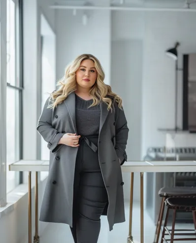 What I adore about this outfit is how it feels so put together but without being overly stuffy. The monochrome gray palette gives it a sleek, minimalist vibe that screams chic without trying too hard. The trench coat is such a statement piece on its own, but paired with the fitted trousers and heels, you re ready to make an unforgettable first impression. This is the outfit that says, “I m classy and confident,” but still totally down to have a great time!