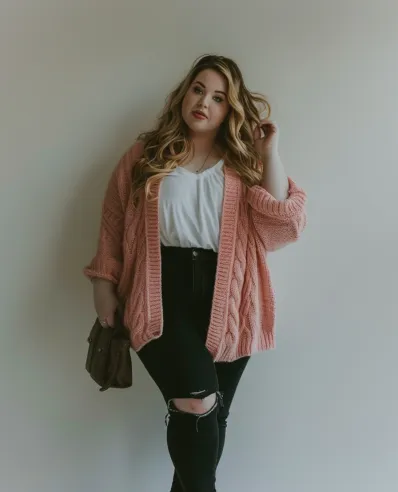 What I love most about this look is how easy it is to throw together while still looking like you put in some effort. That pink cardigan is such a vibe like you re wrapped in a soft blanket, but in a cute way. The ripped jeans bring just enough attitude to make sure it s not too sweet, and those ankle boots? They totally ground the outfit. This is one of those looks where you feel super comfortable but still look stylish and put-together, and really, isn’t that the dream on a first date?
