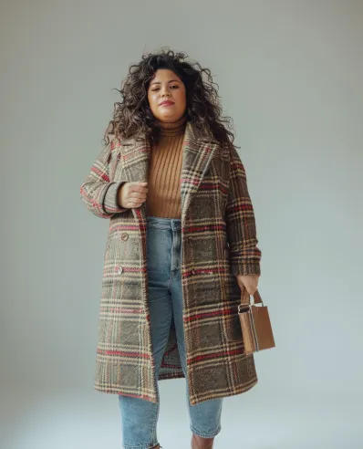 Cozy Plaid Coat with High-Waisted Jeans and Turtleneck