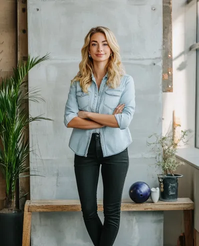 This outfit shows how to pull off denim-on-denim with style. The light-wash chambray shirt, paired with dark skinny jeans, creates a balanced and flattering look. The shirt is slightly tucked in for a neat, structured feel, and the white sneakers add a casual, fresh touch, making it perfect for a relaxed bowling date. The simplicity of the look allows you to feel confident and comfortable, without sacrificing any style points.