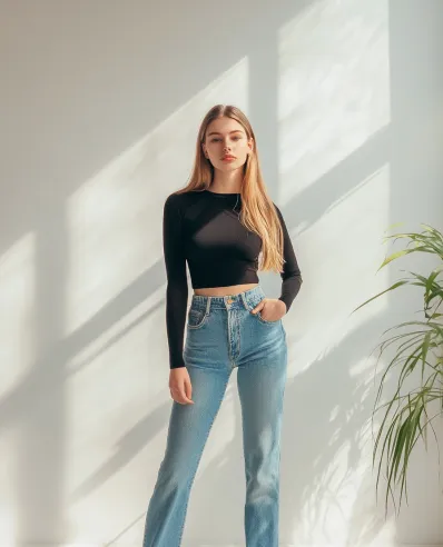 Simple Yet Stylish with a Black Top and Bootcut Jeans