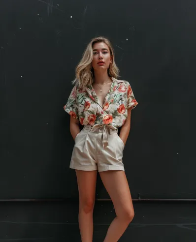 I m loving how easy and chic this combo feels! The floral top brings that cheerful spring vibe, while the paperbag shorts add structure and comfort. It s ideal if you want to stay cool while still looking put-together. Whether you re heading to an Easter picnic or strolling through a flower market, this outfit hits all the right notes for a stylish yet carefree day.