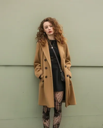 I m absolutely in love with this look because it screams effortlessly put-together.â You could wear this for a day of shopping or a coffee date and still turn heads without looking like you tried too hard. That camel coat is a wardrobe staple it s chic and cozy at the same time and paired with those bold lace tights, the whole outfit feels so modern yet timeless. Honestly, this combo gives me major cool girl who reads poetryâ energy, and who wouldn t want that?