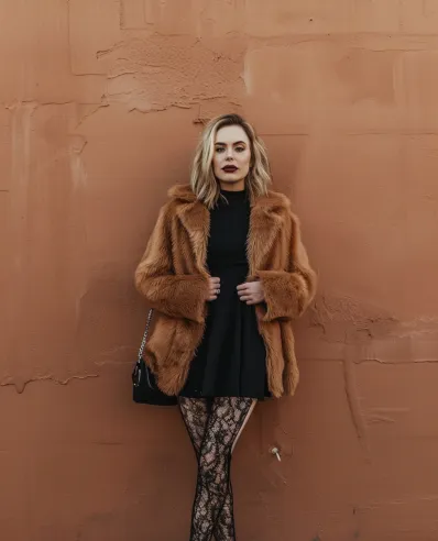 What I love about this outfit is how it feels so glam without being fussy. The faux fur coat screams confidence (and keeps you warm, bonus!), while the lace tights give the black dress a fun, unexpected twist. It s the kind of outfit you throw on for dinner or drinks when you want to look put-together but still feel a little bold. Plus, it s impossible not to feel fabulous in a fluffy coat like this honestly, it s like wrapping yourself in chic luxury while turning heads everywhere you go!