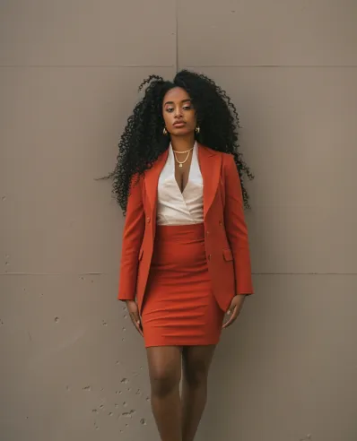 I adore how effortlessly powerful this outfit feels. The cherry red skirt commands attention without being over-the-top, and the tailored fit is simply stunning. Pairing it with the black top is such a smart move it s like the perfect balance of bold and refined. This is the kind of look that makes you feel like you can conquer a boardroom and then head straight to cocktails with friends. Honestly, it s giving boss energy in the best way!