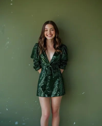 Emerald Sparkle: A Festive Mini Dress That Shines
