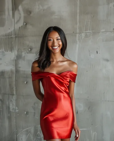 This off-the-shoulder red satin mini dress is everything you need to turn heads this holiday season. The twisted neckline detail adds a touch of drama, while the smooth, sleek fabric enhances its luxe vibe. Its figure-hugging silhouette is flirty yet elegant, making it a stunning choice for Christmas parties, romantic dinners, or even a holiday date night. Keep it simple with minimal accessories and let the dress shine.