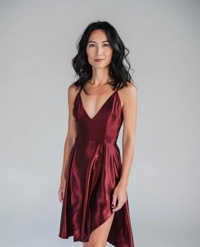 Burgundy Satin Elegance: A Timeless Holiday Dress