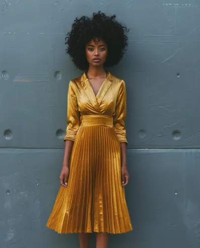 Golden Glow: Pleats and Satin for Holiday Sophistication
