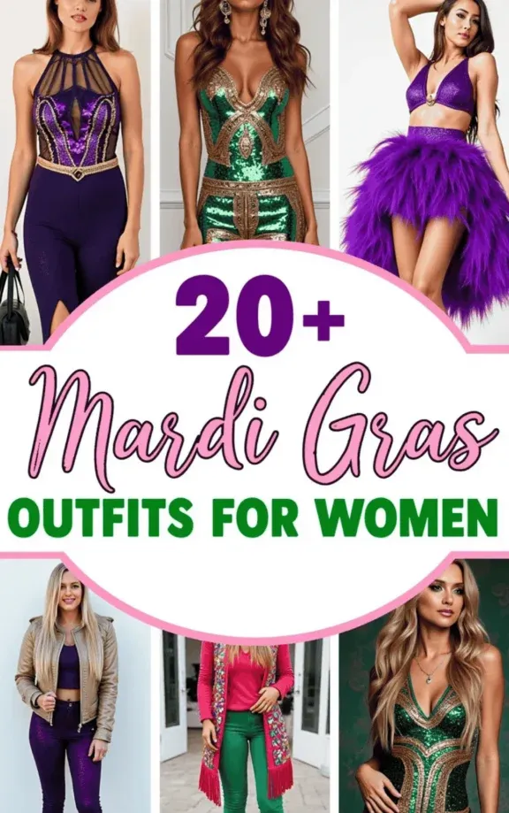 I m absolutely loving how this outfit blends festive glam with modern chic. The purple and green combo is a nod to classic Mardi Gras colors, but in a much more elevated, fashion-forward way. It s perfect for someone who wants to look sophisticated but still have fun with bold textures and colors. Honestly, this is one of those outfits that says, Yes, I came to party, but I m doing it in style!â