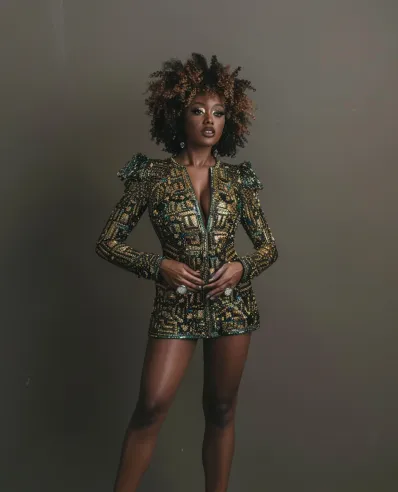 I m obsessed with how sophisticated and fierce this ensemble feels. It s perfect for anyone wanting to channel boss energy while still embracing the festive spirit. The metallic sheen gives it a celebratory vibe without being too flashy, and that tailored fit? Perfection. It’s bold, stylish, and effortlessly chic just the kind of outfit to make you feel like you own the night!