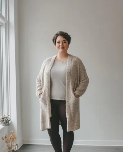 I just adore this outfit! It s got that perfect blend of comfort and effortless style, making it a fantastic choice for a first date where you want to feel at ease. The cozy cardigan feels like wrapping yourself in a blanket (but way cuter), and the warm neutrals give off such a relaxed, approachable vibe. Whether it s a casual lunch or a stroll through a local market, this look says, I m comfortable in my skin and ready for whatever comes next.”