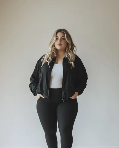I m loving this outfit because it s so easy to pull off and yet looks super stylish! The bomber jacket adds a little edge without feeling too heavy, while the high-waisted leggings give the whole look a sleek finish. And those white sneakers? Always a good call for a casual date where you might be moving around. This is a great option if you re doing something fun and active like going bowling or exploring a new part of town comfy, stylish, and ready for anything!