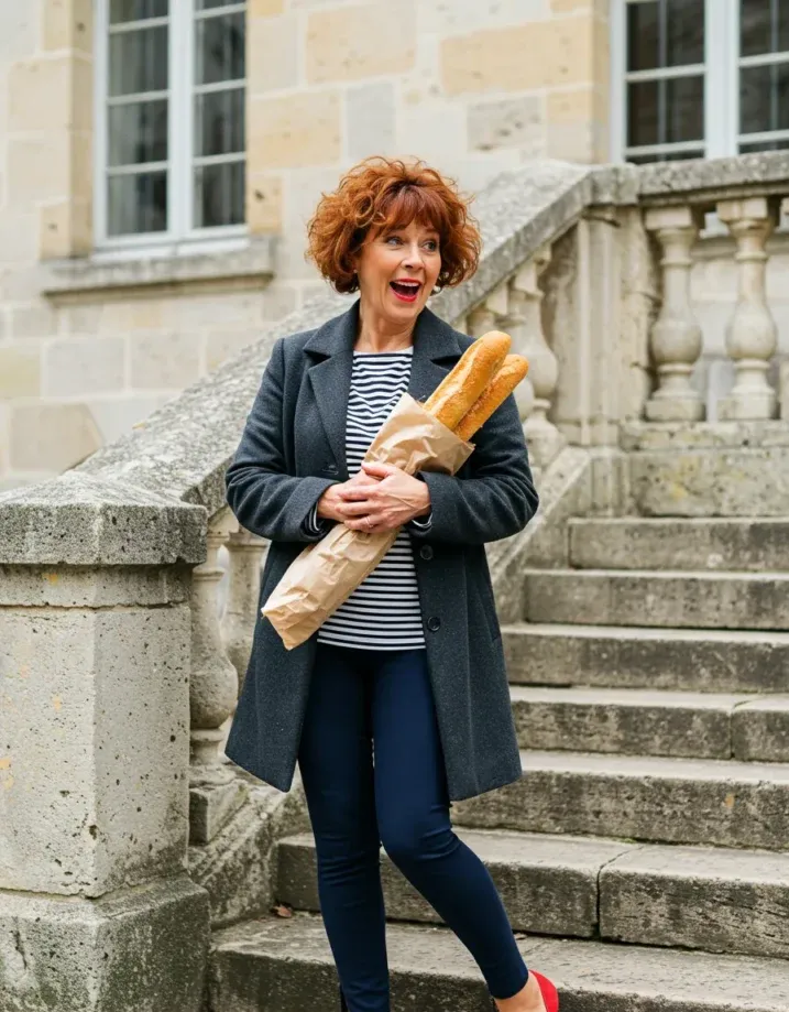 I love how fun and polished this outfit feels. It s comfy, it s coordinated, and it s got just the right amount of flair to turn heads in the bakery line. Stripes and red flats are such a classic combo, and those leggings keep it modern and practical. Honestly, this whole look is a mood. It s confidence, style, and baguettes all in one outfit.