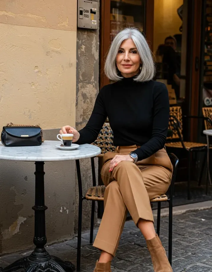 I love this look because it proves that basics can be absolutely stunning when styled right. The contrast between the black and camel is so classy, and the fit of both pieces is perfect for petites no bunching, no overwhelming layers, just clean lines that flatter. This is my dream outfit for sitting at a café, enjoying espresso, and pretending I m in a European film. It s effortless, refined, and honestly just makes you feel powerful and put-together.