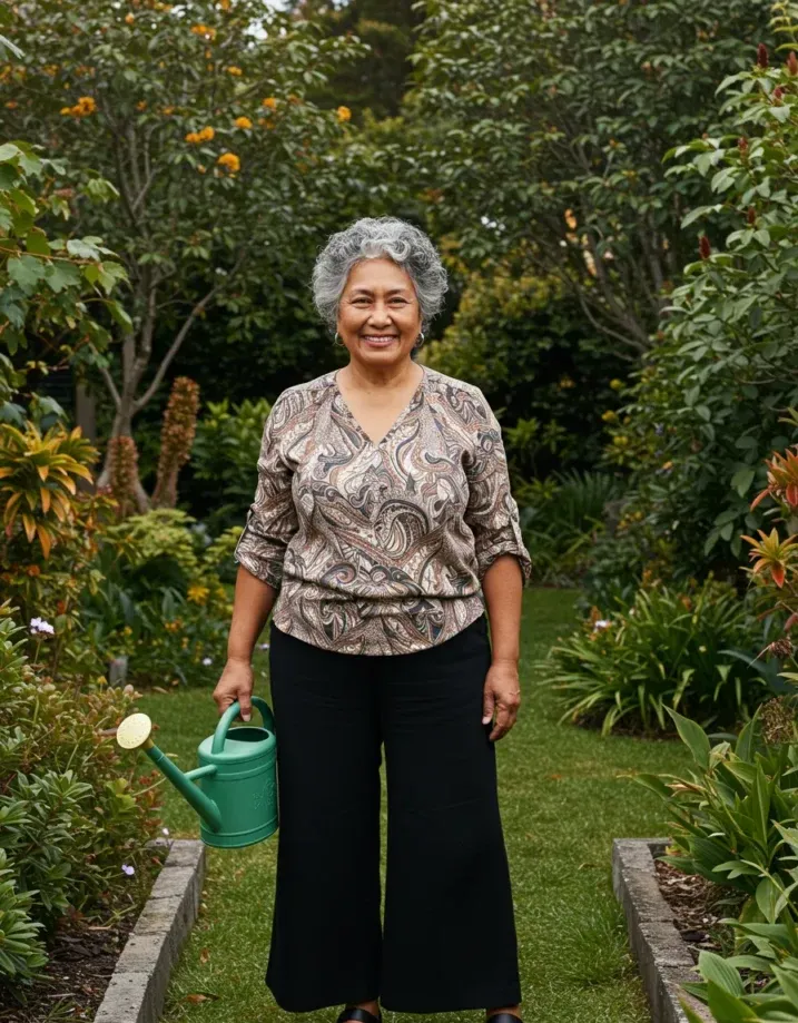 I love this look because it s stylish without being fussy. It s the kind of outfit that lets you feel comfortable while still looking put-together, which is the ultimate win in my book. The wide-leg pants add flow and balance for petites, and the print brings a little bit of fun to your everyday routine. I d wear this while tending to my plants, chatting with neighbors, or even just enjoying my morning coffee in the garden. It’s down-to-earth, pretty, and effortlessly real.