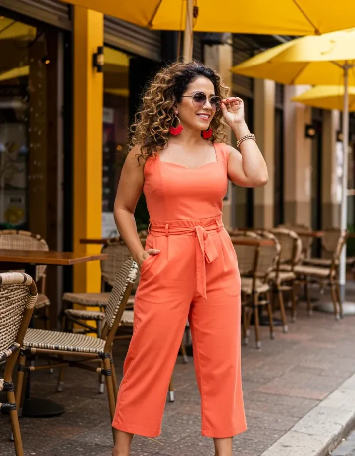 I m absolutely loving this look because it s joyful and bold without being too much. The belted waist really helps define the figure, which is perfect for petite frames, and the cropped legs keep the proportions balanced. And let s be honest wearing this color just makes you feel like sunshine. I d wear this to a summer brunch, a rooftop party, or anywhere I want to soak up compliments while sipping something cold and fruity.