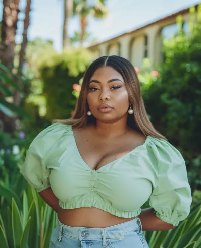 What I adore most about this outfit is how it blends trendy with classic. The puff sleeves give that statement vibe without going overboard, and the fresh pastel color just screams spring renewal! Plus, high-waisted jeans are always a confidence booster they hug in all the right places. This look is ideal for a weekend picnic, a stroll in the park, or snapping cute Instagram photos!