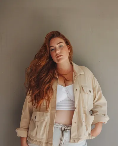 This outfit nails a relaxed, effortless vibe with a beige utility jacket layered over a white cropped top. The jacket s structured design adds a bit of edge, while the light-wash distressed denim shorts keep things casual and breezy. It s the perfect combo for warm spring days with cooler mornings or evenings.