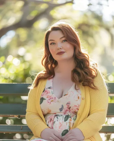 This floral dress is all about embracing the beauty of spring! The delicate print of soft pink and green blossoms pops beautifully against the flowy fabric, while the cinched waist and V-neckline create a flattering, feminine silhouette. Layered with a cheerful yellow cardigan, the outfit radiates warmth and positivity perfect for a picnic or a stroll through the park.