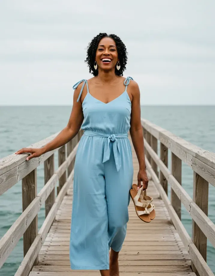 Light Blue Jumpsuit with Beachy Barefoot Charm