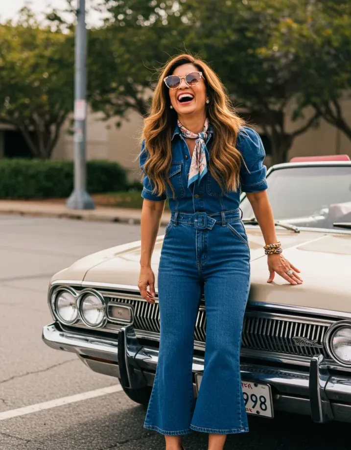 Retro Denim Jumpsuit with Fun 70s Energy