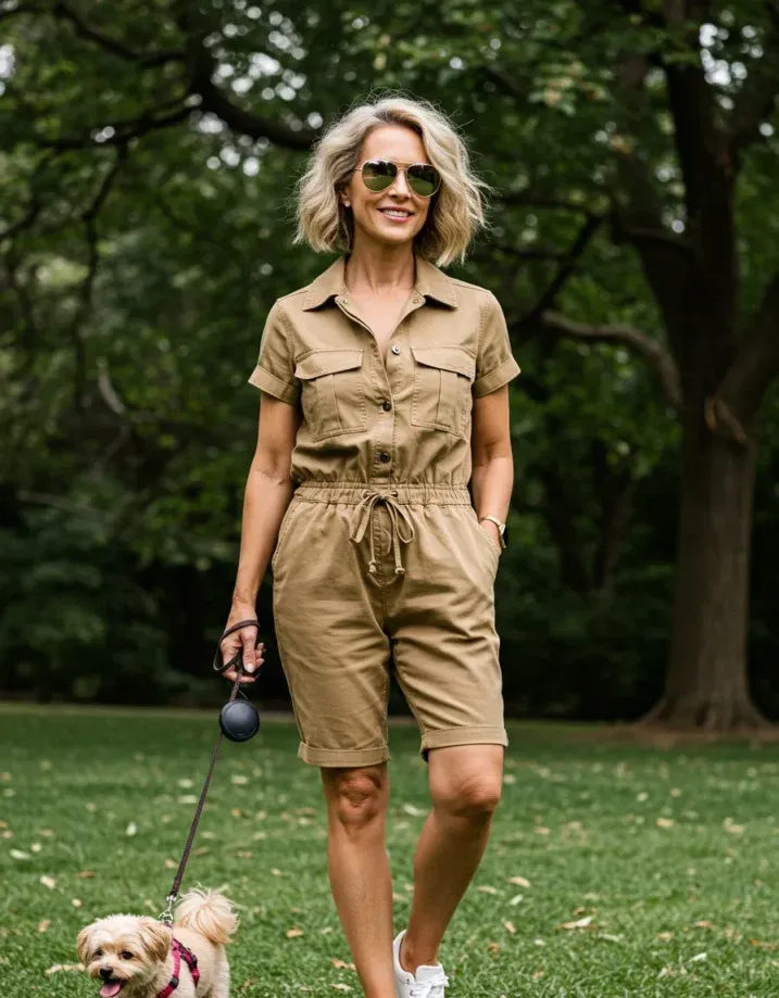 Khaki Short Jumpsuit with Laid-Back Explorer Style