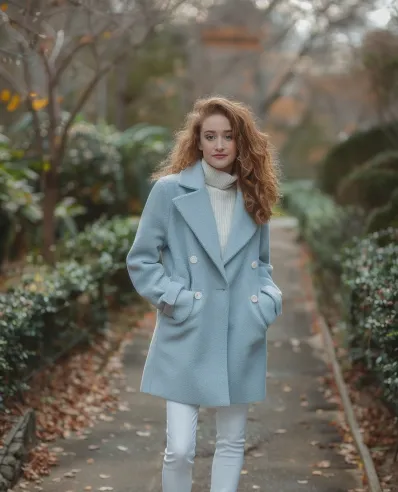 Light Blue Coat with All-White Layers