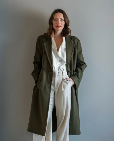 I m obsessed with how chic and versatile this combo is! The olive coat gives a nod to spring s earthy palette, while the cream layers keep it fresh and bright. It s perfect for days when you want to feel both powerful and comfortable. Honestly, this outfit just screams, “I’ve got it all under control,” without even trying!