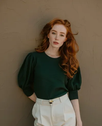 I think this outfit is such a refreshing choice for a museum date. The contrast between the rich green and neutral beige is both eye-catching and elegant. The puff sleeves add a whimsical touch that s perfect for a creative setting. It s stylish but relaxed ideal for wandering through exhibits and enjoying thoughtful conversations. Definitely a look that turns heads in the best way!