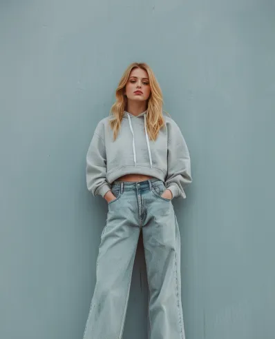 Relaxed Street Style With a Cropped Hoodie and Wide-Leg Jeans