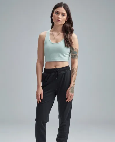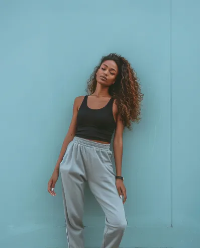 I love how effortlessly cool and relaxed this look is. The tank top brings a simple but flattering touch, and the joggers are ideal for moving around without feeling restricted. It s a no-fuss, stylish option that says you re ready to enjoy yourself while still looking on point! Perfect for a laid-back night out.