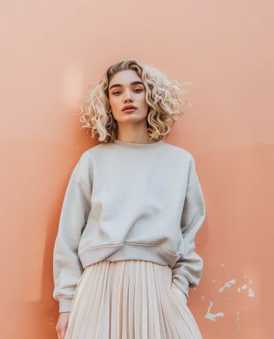 I m loving how this outfit feels stylish but super easy-going. The pleated skirt adds just the right amount of polish, while the sweatshirt keeps things casual and comfortable. It s great for when you want to look cute but still feel totally at ease. Stylish, simple, and oh-so-comfy!