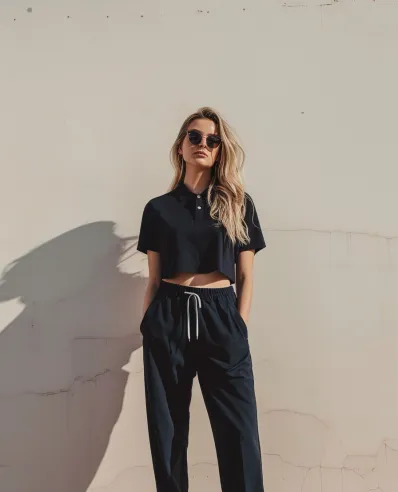 What I really love about this is how you can look stylish without sacrificing comfort. The joggers give you the freedom to move around easily, while the cropped polo adds just enough structure to make it feel put-together. Plus, those sunnies are pure attitude, right? It’s the ultimate combo of relaxed and trendy!