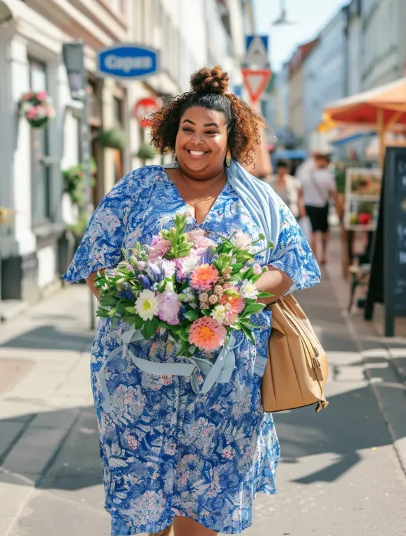 I adore how this outfit feels equal parts polished and comfortable. The wrap fit is always a win for curves, and the floral pattern gives it such a gentle, feminine energy. It s one of those dresses I d wear for garden strolls or outdoor brunches when I want to feel pretty but still super relaxed. Plus, that color? So flattering and easy to style around.