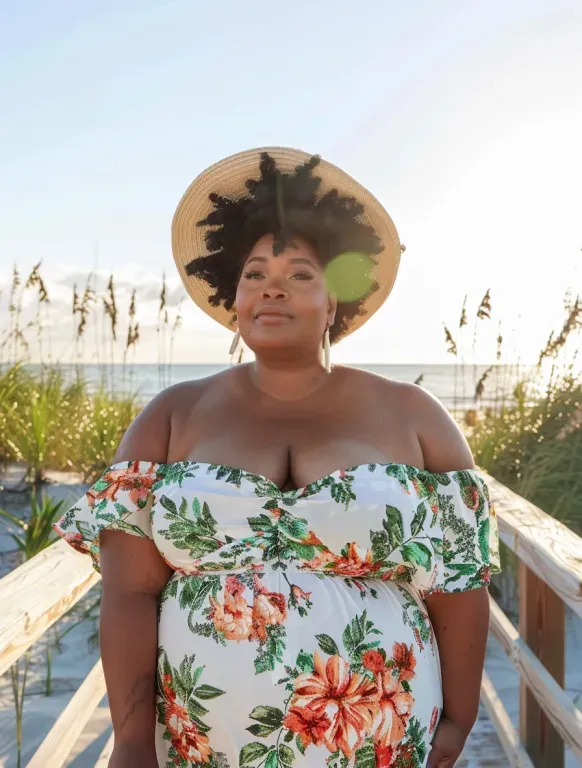 I seriously adore this look. It s romantic, breezy, and makes a statement without trying too hard. The print feels like sunshine and vacation in fabric form, and that sleeve detail is both flirty and functional for keeping things cool. If you re headed to a beach boardwalk or just want to bring the summer energy wherever you go, this one s a total winner.