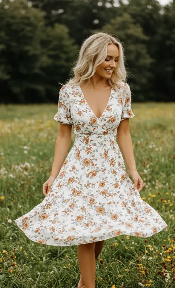 Honestly, this dress makes me want to run through a meadow with a basket of wildflowers. It s so effortlessly pretty and romantic, and I love how it gives off that carefree, sunshiney kind of energy. It feels like something I d wear to a garden picnic or a casual brunch with the girls. Plus, the floral print is soft but eye-catching, which makes it feel fresh without being over-the-top. Major heart eyes for this one.