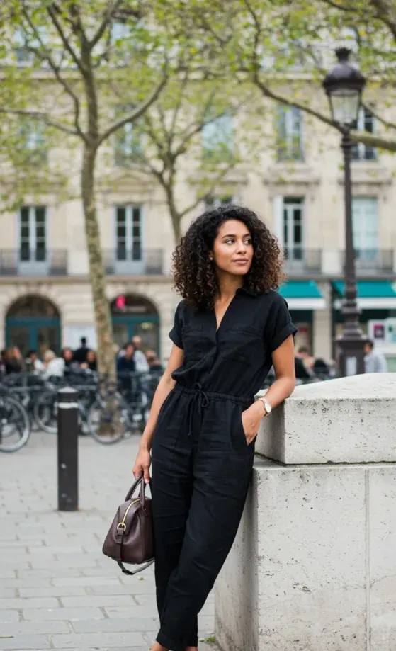 Chic Black Jumpsuit for a Day in Paris