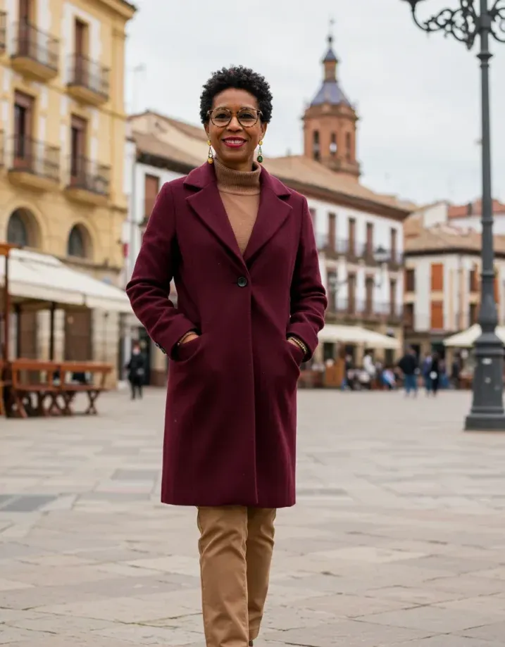 What I love here is how stylish and down-to-earth it feels at the same time. You ve got this elegant color combo burgundy and camel always look luxe but the sneakers say let s be comfy while we slay.” It s one of those looks that would take you from the café to sightseeing to dinner with zero effort. So chic and so wearable.