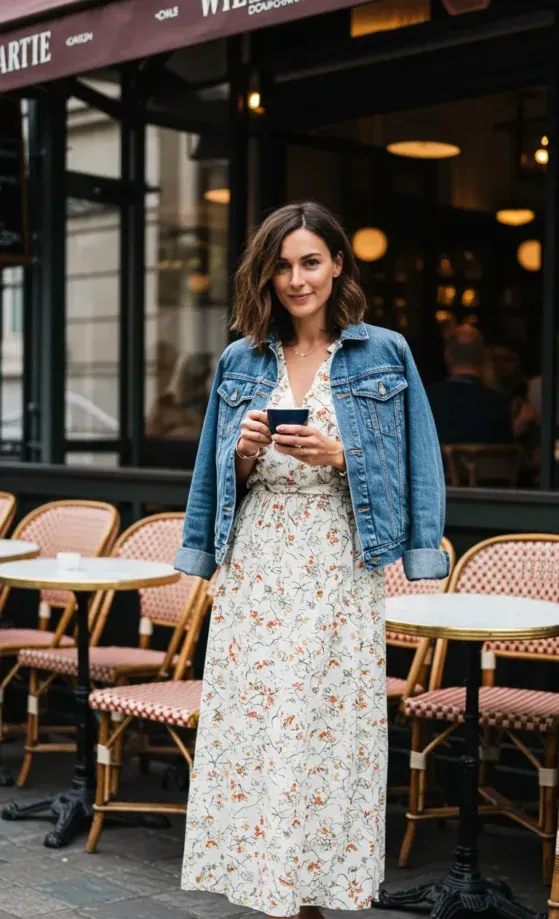 I absolutely love how this outfit combines the softness of the floral print with the edginess of the denim jacket. It feels effortlessly cool, but at the same time, it s super easy to wear. The floral dress is perfect for those days when I want to feel a little more feminine, and the denim jacket gives it that cool-girl vibe without trying too hard. It’s the kind of outfit that looks put-together but still feels casual exactly what I want for a sunny day out.