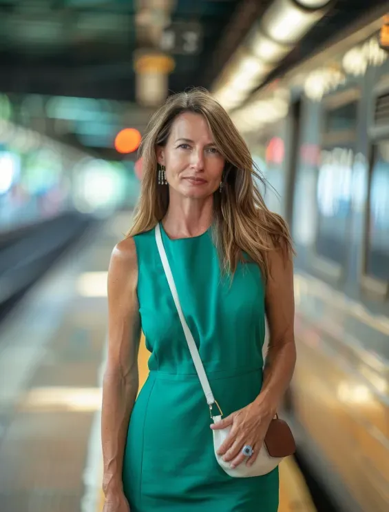 This emerald green sleeveless dress is a total showstopper. It hugs in all the right places with a clean, tailored fit and a modest hem that still feels fresh and flirty. Paired with a crossbody bag and a swipe of soft lipstick, it s the kind of outfit that s made for train stations, city strolls, and unexpected compliments.