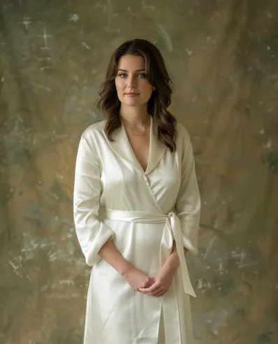 What makes this dress so special is how timeless it feels. The wrap style is universally flattering, and the satin gives it just the right amount of romance without being over the top. It s perfect for when you want to look polished and put-together while staying comfortable. This outfit feels like a quiet confidence it doesn t shout for attention, but it still steals the spotlight. Perfect for an elegant and intimate evening!