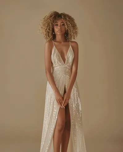 This dress is absolutely show-stopping like, where s my red carpet? The sparkle is so dreamy and luxurious, and the silhouette is flattering without being over-the-top. It s perfect for a night where you want to feel like royalty. Honestly, this gown is giving me major goddess vibes, and I can t think of a better way to celebrate love than looking and feeling this fabulous. You ll shine brighter than any candlelit table!