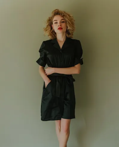 Sophisticated Black Satin Shirt Dress with a Bold Twist