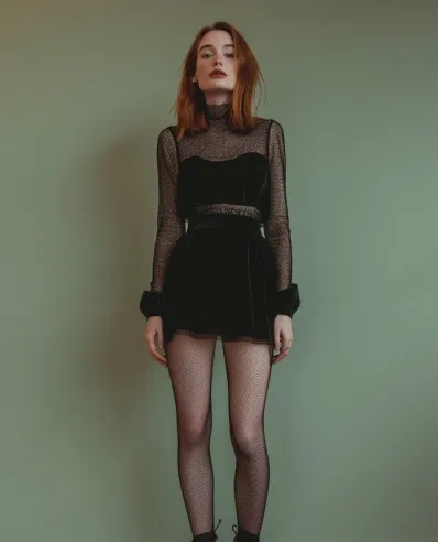 What I love about this look is its unapologetic attitude. It s got that I m here to break hearts” energy while still feeling chic and stylish. The combination of textures sheer, velvet, and fishnets is so interesting and makes the outfit pop. Plus, the boots add a cool-girl edge that s impossible to ignore. This is for someone who wants to feel powerful and a little rebellious on Valentine s Day. A true statement outfit!