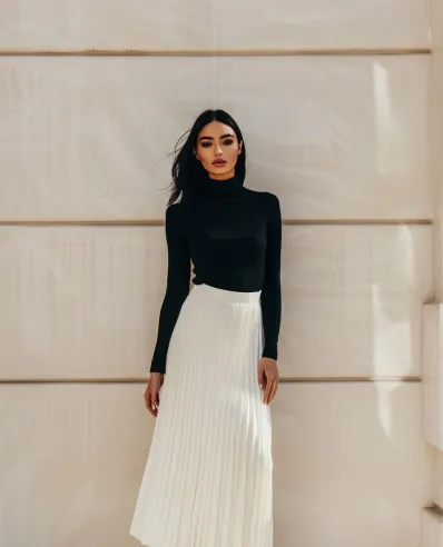 Monochrome Magic: Black Turtleneck and White Pleated Skirt