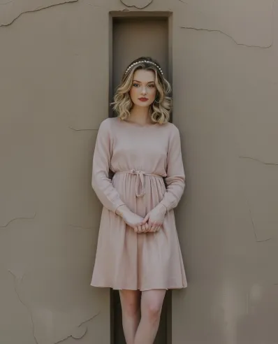 What I love most about this outfit is how effortlessly chic it feels. The soft blush tone is so romantic and flattering, and those dramatic puff sleeves make such a statement. It s one of those dresses that makes you feel confident and graceful the moment you slip it on. Perfect for when you want to radiate elegance with just the right touch of glam it s tea party perfection!