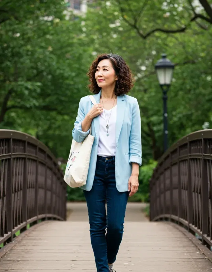 I love how this outfit strikes the perfect balance between I m just out for a strollâ and I could totally pop into a meeting.â The pastel blazer is everything. It brightens up the whole look and gives it that modern feel without trying too hard. It s cute, comfy, and just makes me feel like I ve got my life together even if all I ve got planned is grabbing a coffee and people-watching in the park.