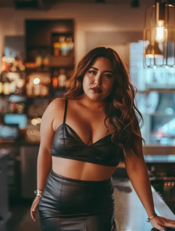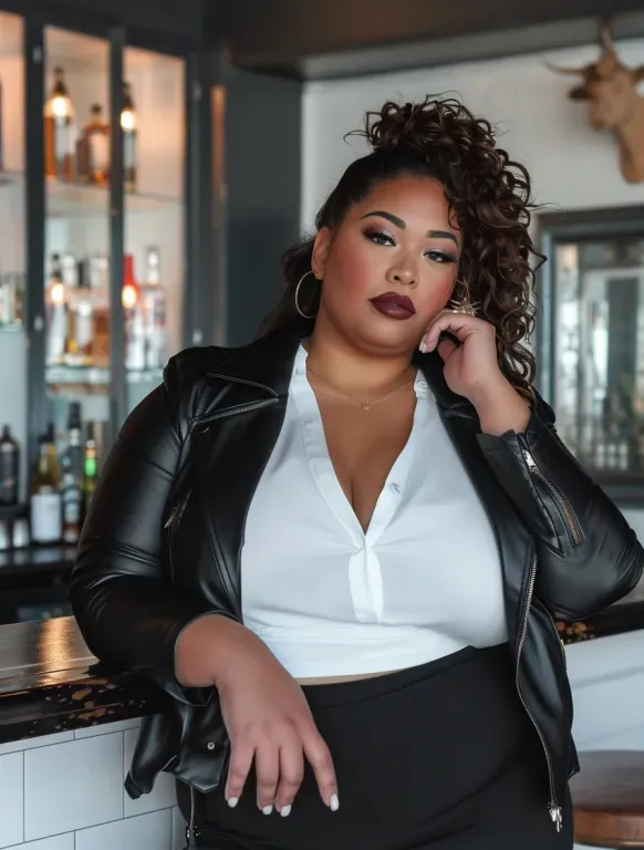 I absolutely love how this outfit strikes the perfect balance between tough and feminine. The leather jacket adds that rebellious, cool-girl edge, while the soft, fitted top and skirt highlight the curves in all the right ways. It s a great choice for a bar night when you want to feel empowered and chic at the same time. Plus, who doesn t love a good leather jacket? It never goes out of style, and neither does this outfit!